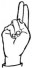 На ћирилици написано ЛАБУДА КРНЧЕВИЋ састоји се из 14 слова [?]. Исписано ћириличном једноручном азбуком за глувонеме: